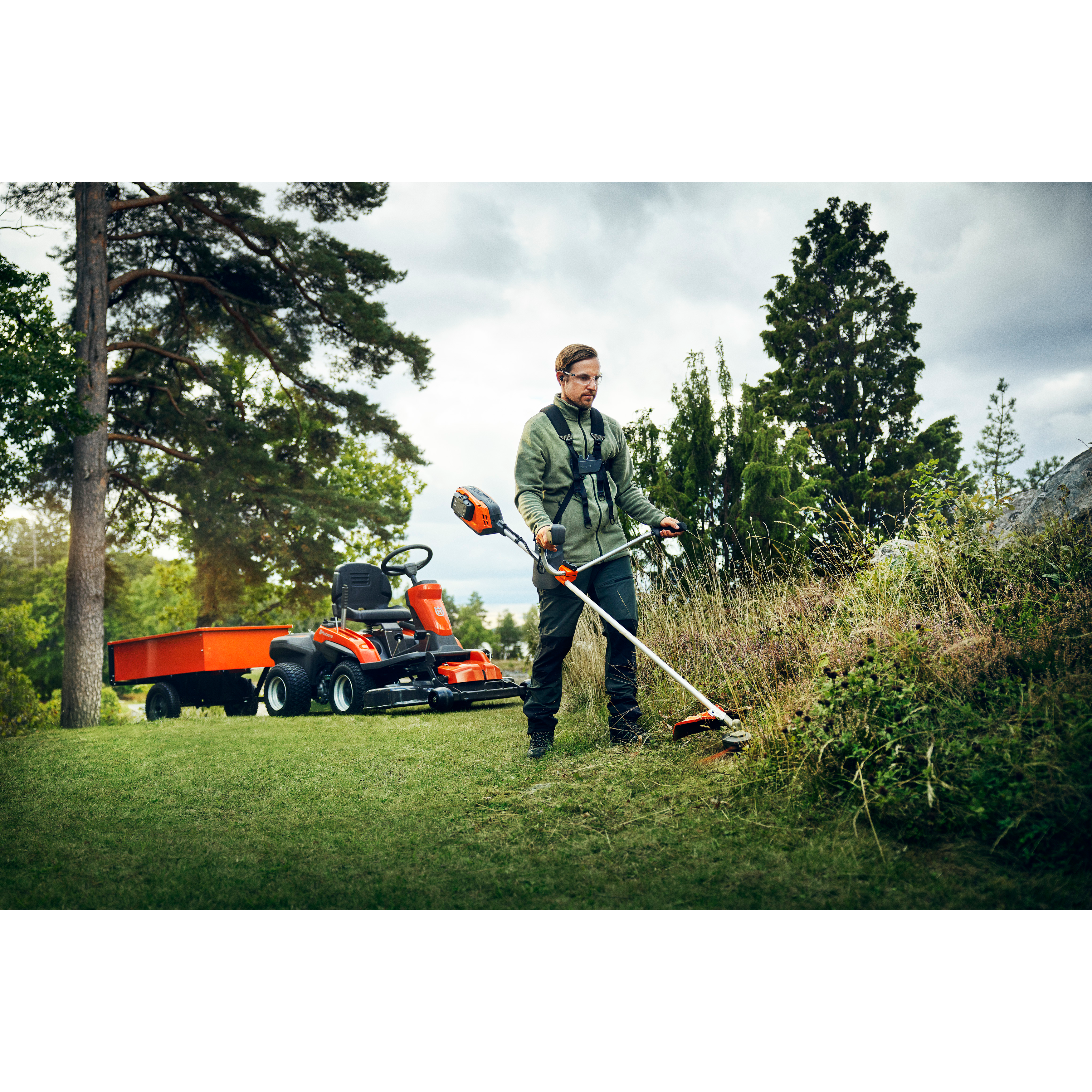 Denna modell levereras utan batteri och laddare, vilket ger flexibilitet att välja en strömkälla som passar dina behov. Med en vikt på endast 3,5 kg (exklusive batteri och skärutrustning) är den lätt att hantera under längre arbetspass.